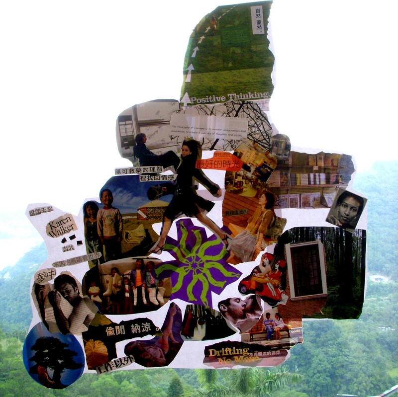 這是在去年在五毛家做的夢想拼貼 到目前為止拼貼上實現的部分有睡得比以前多很多和自在悠閒的生活 感情有比較穩定的趨勢 也更常靜下心來看窗外 然後自然而然這一大塊好像也做得到了 但中間關於工作和理想這部分就還需要更努力 恩 沒問題的